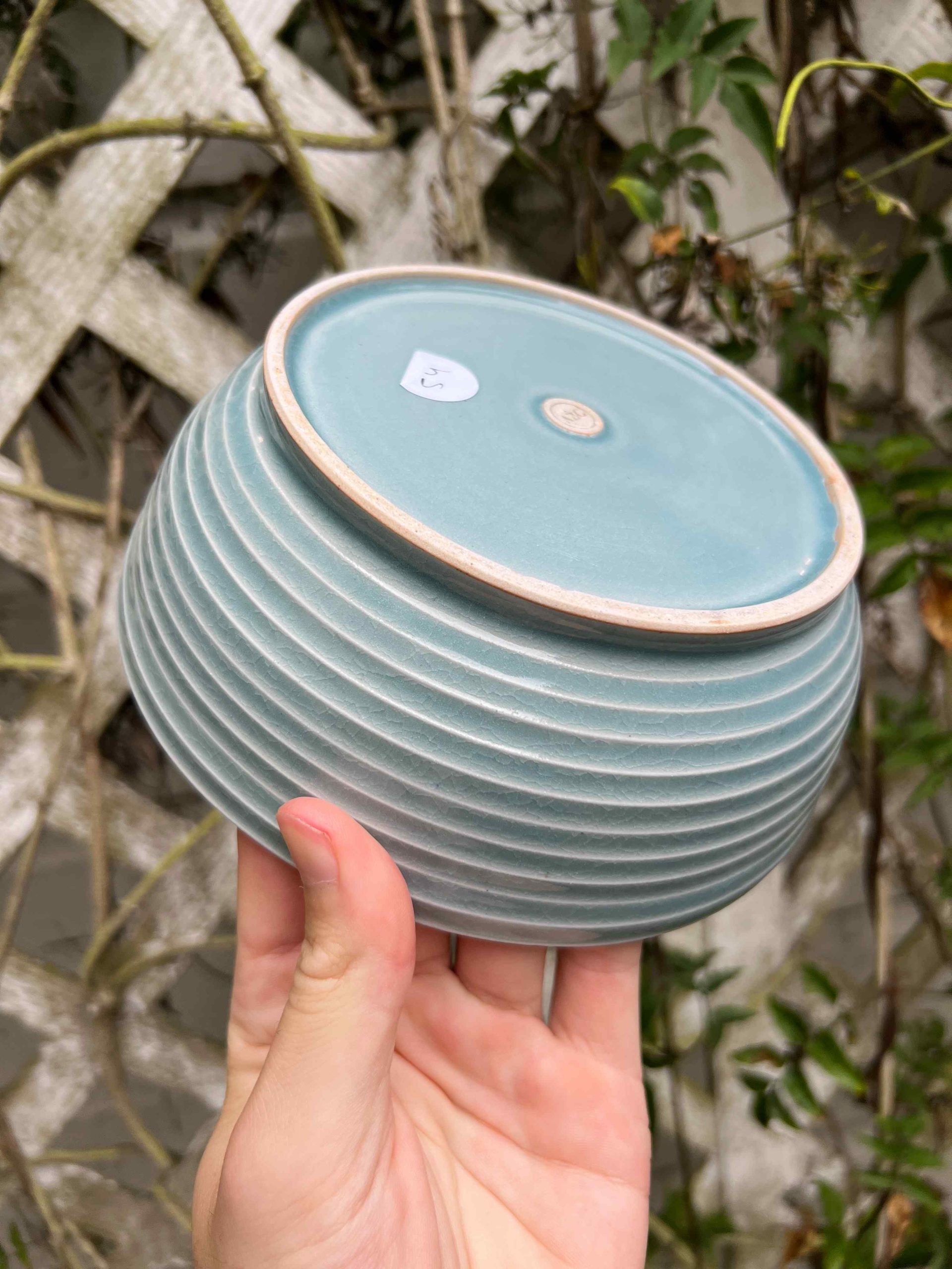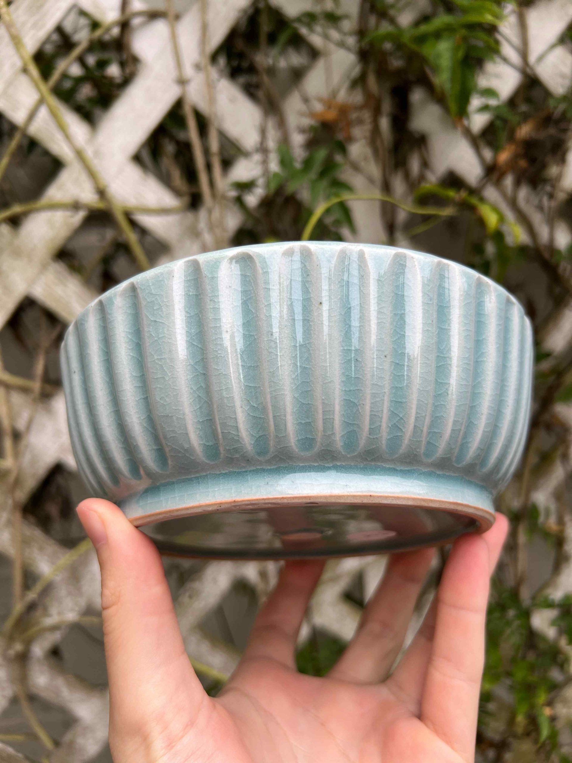 Perfect bowl for everyday use. The bowl uses a nice blue celadon glaze for a variety of shades of blue. Extra wide bowl perfect for pasta or any of your plate bowl needs!