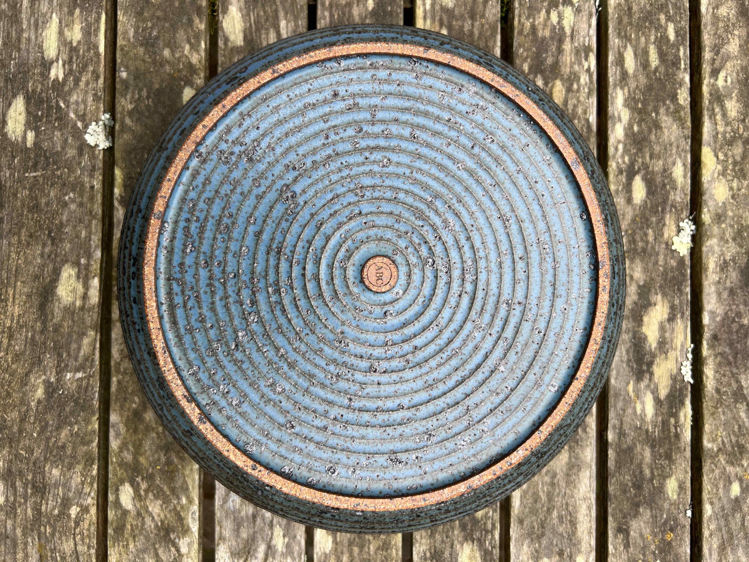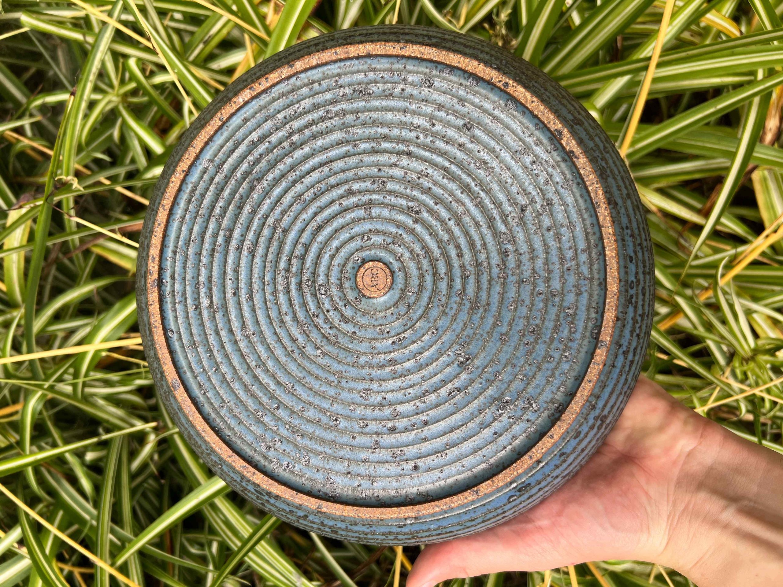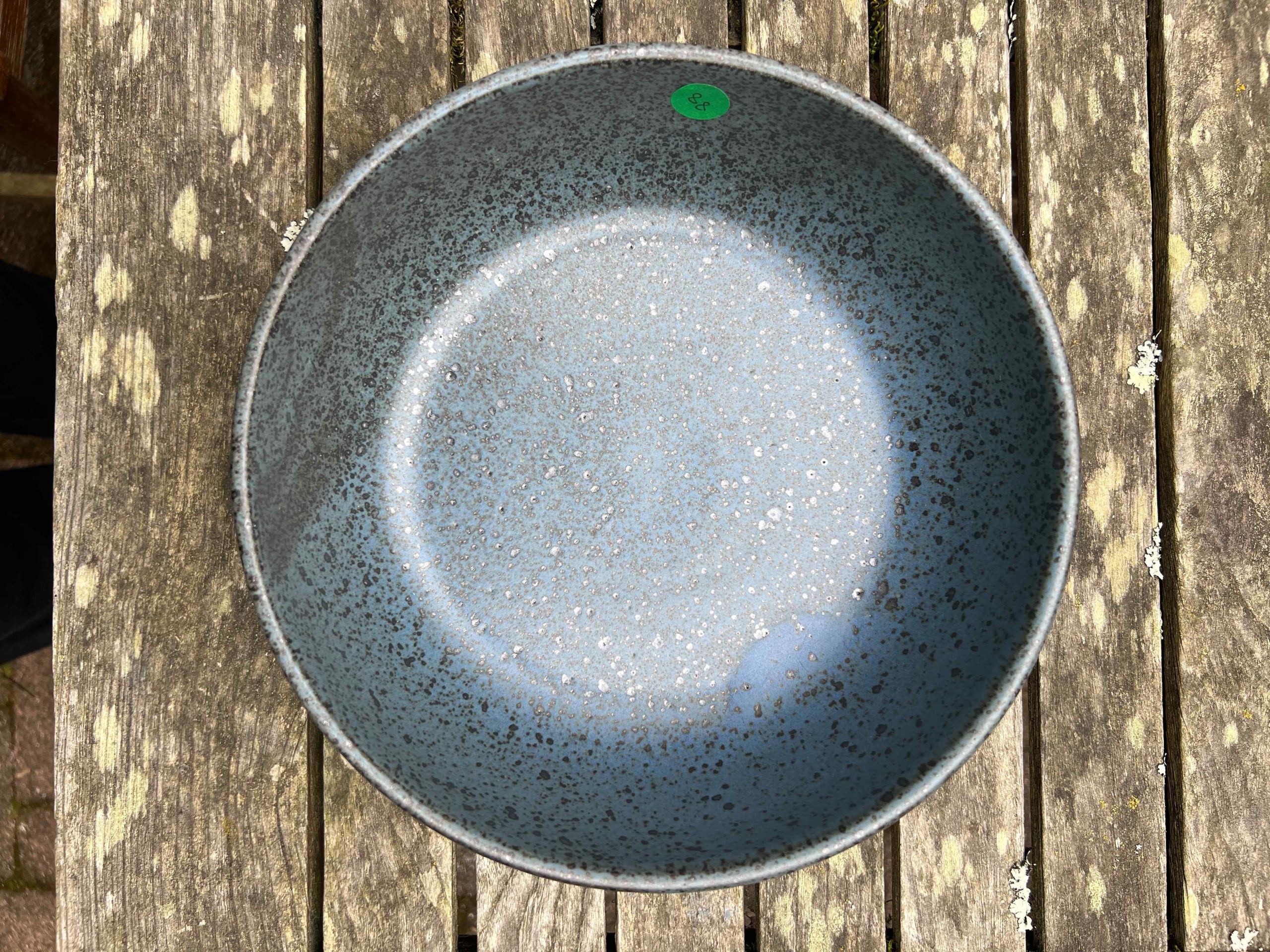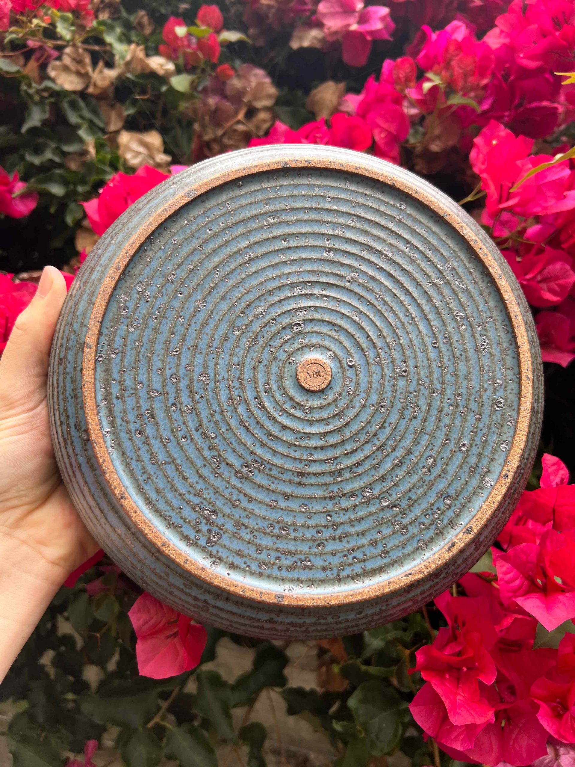 Our blue speckle serving bowl is a great wide bowl for your next dinner party. The texture is added after the trimming process. The perfect piece for any kitchen.