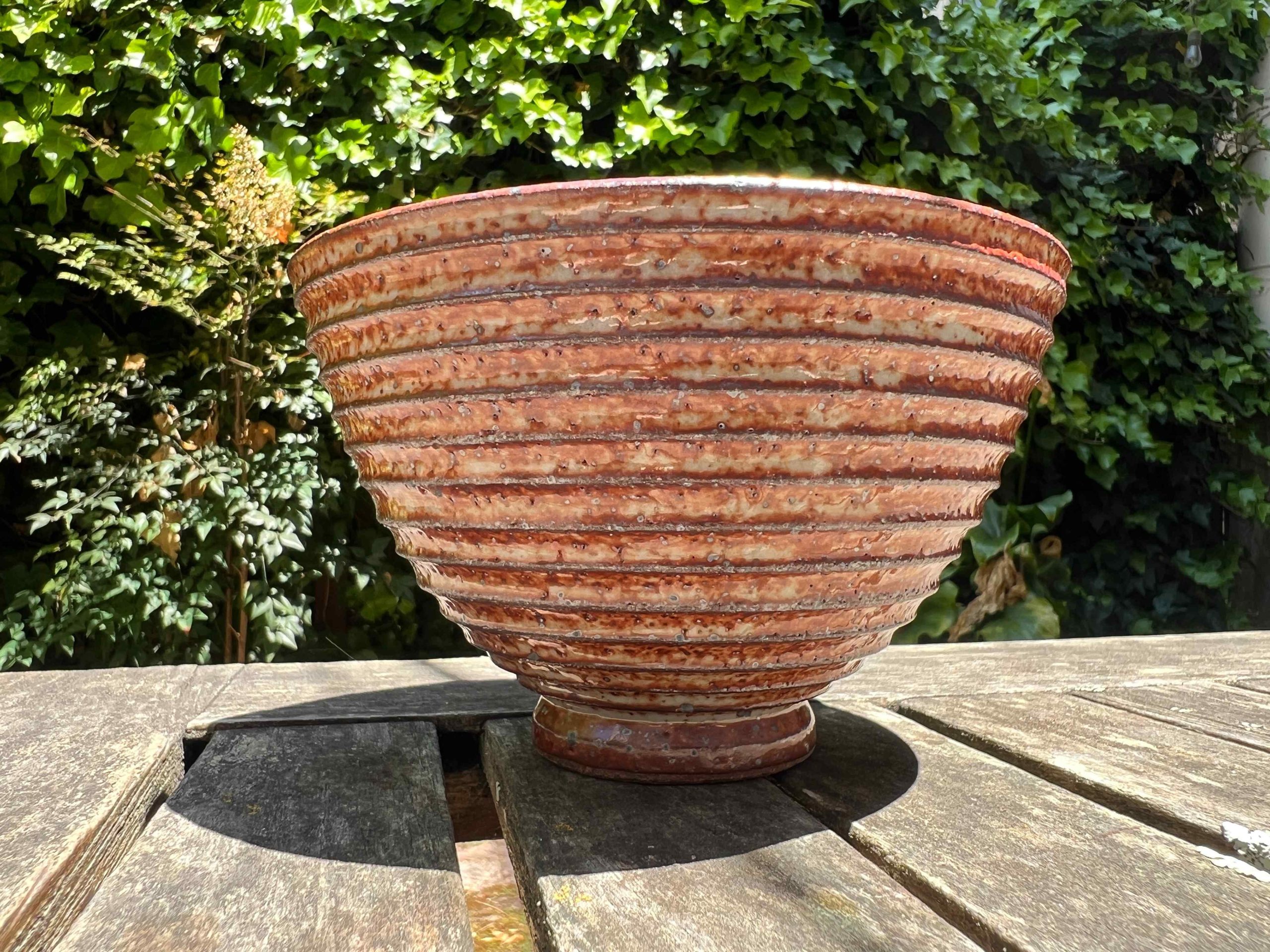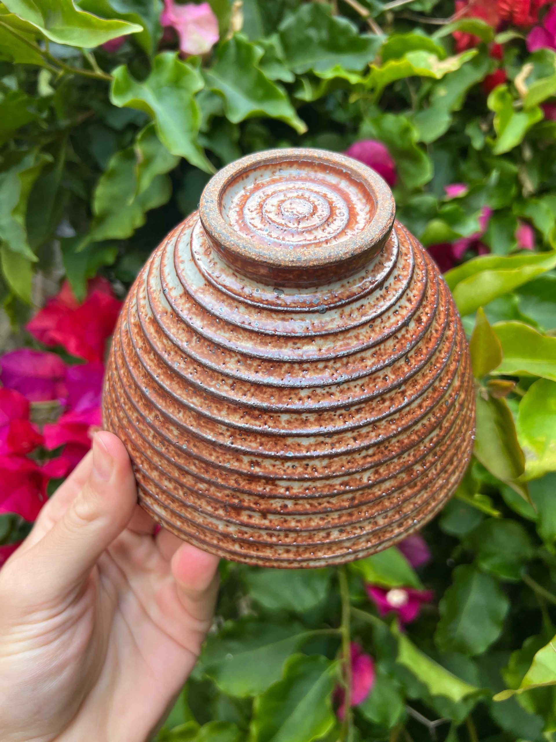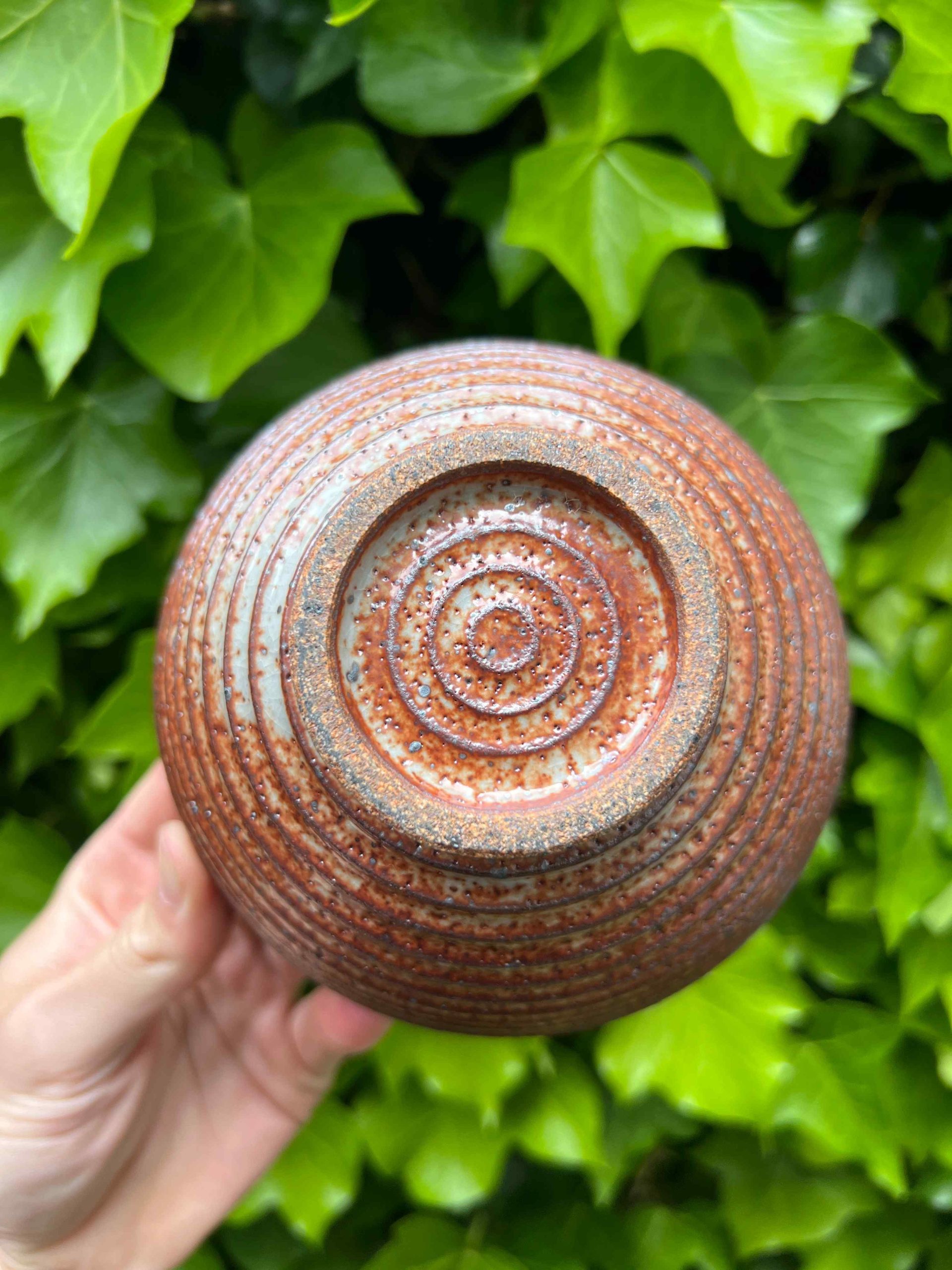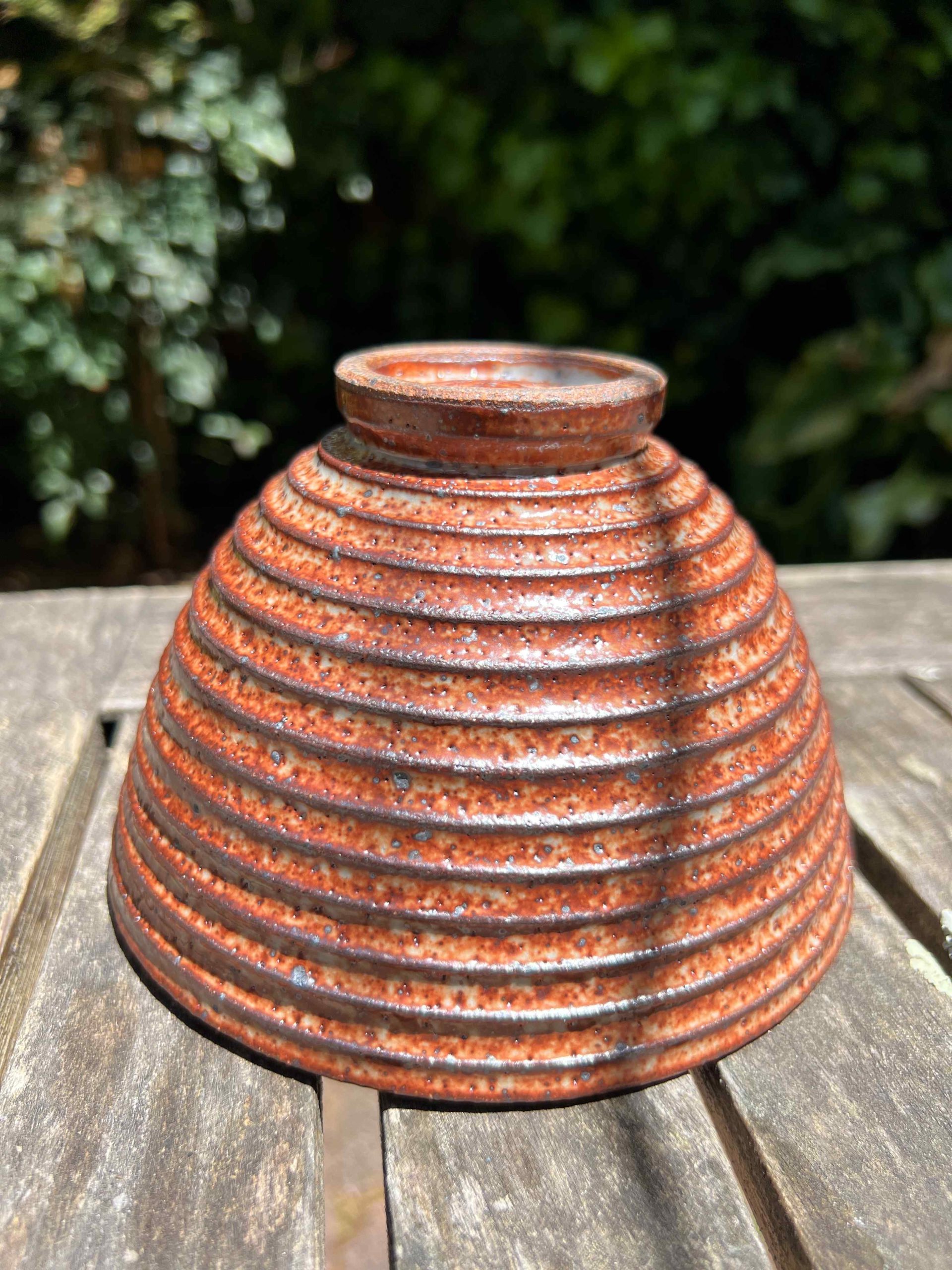 Our orange everyday bowl is a great everyday bowl. The texture is added after the trimming process. The perfect piece for any kitchen.