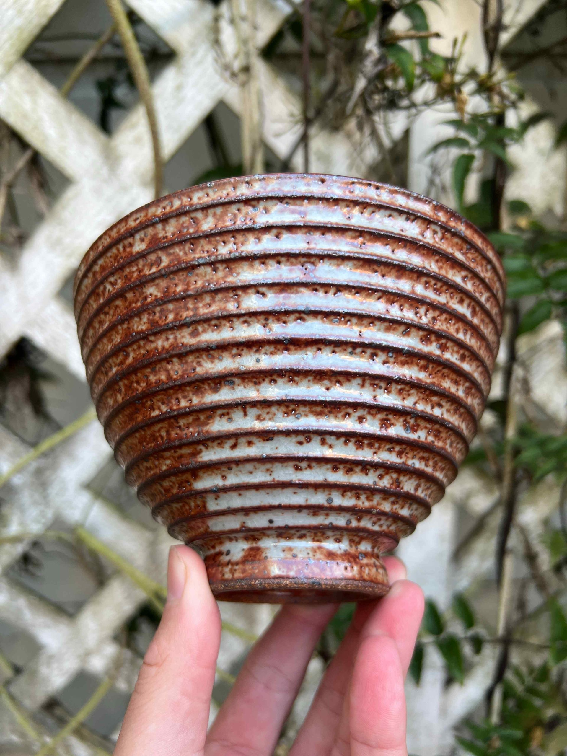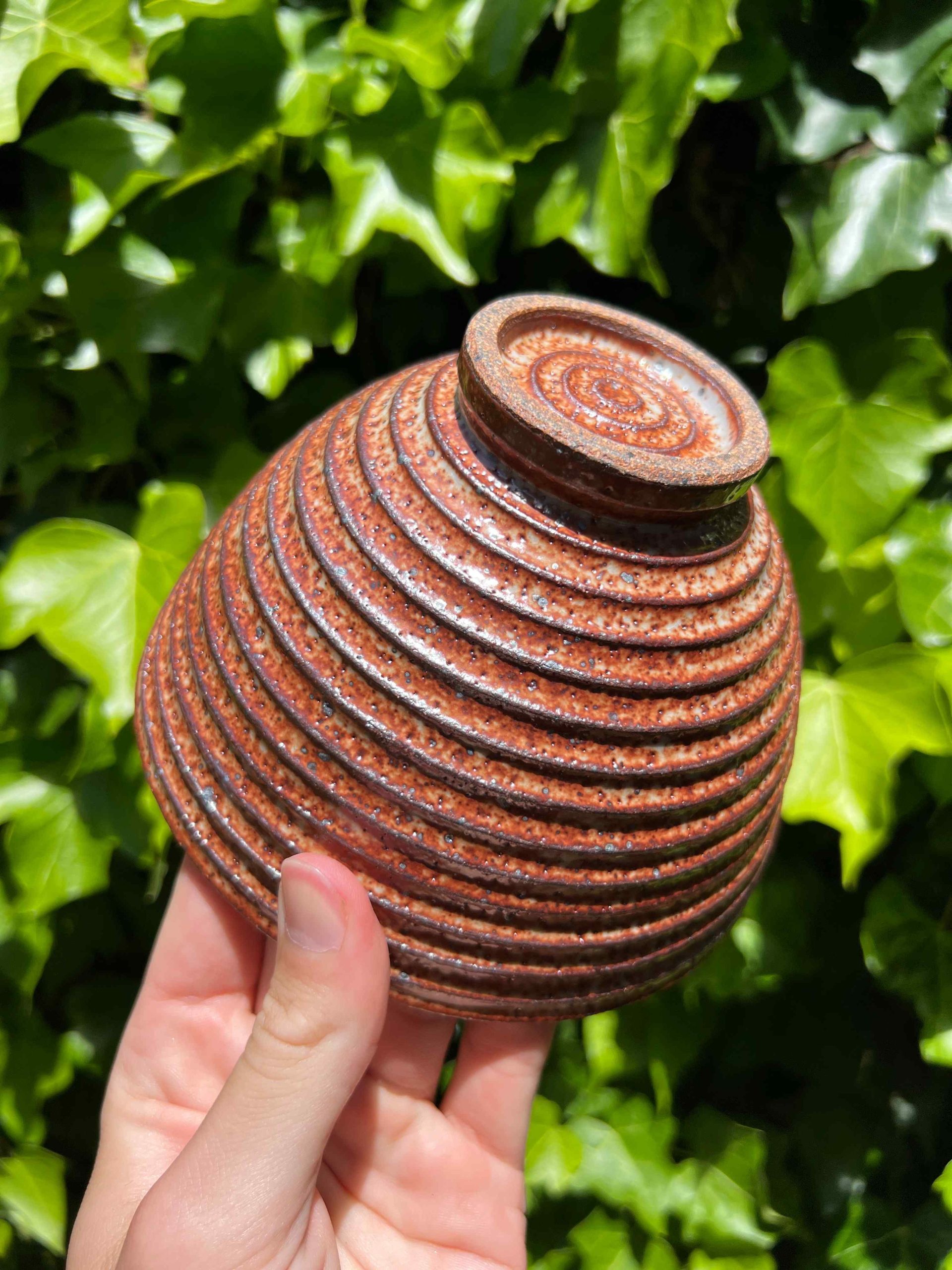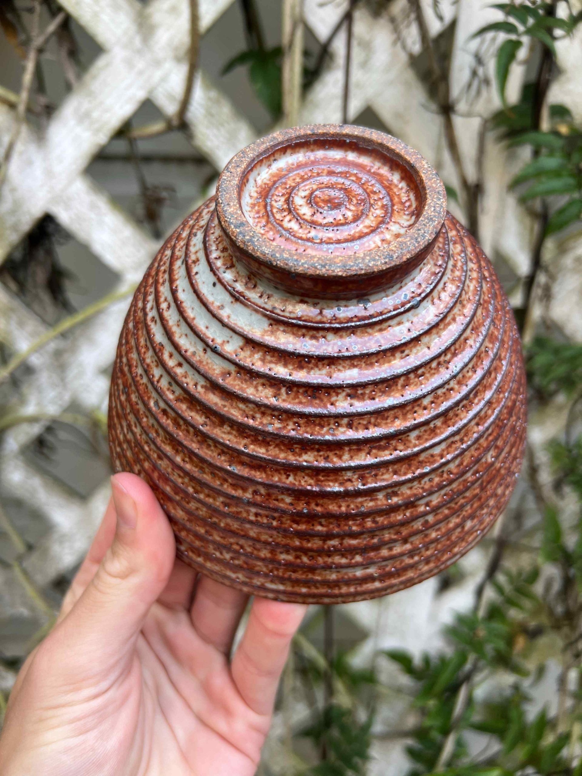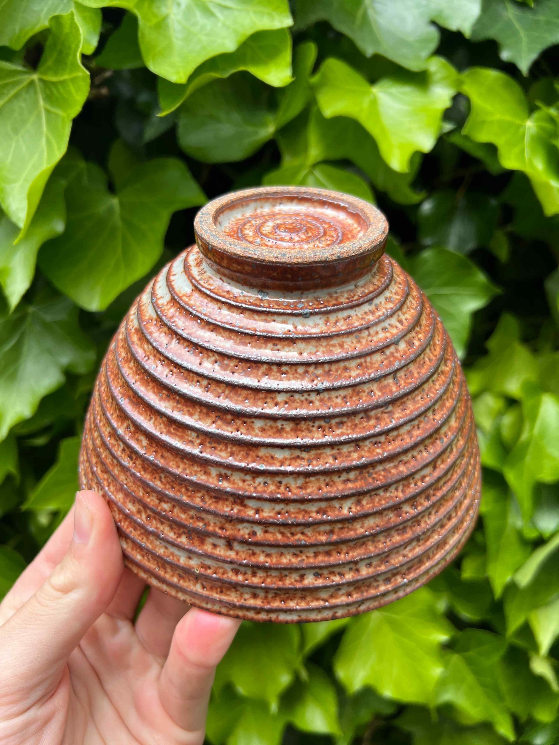Our orange everyday bowl is a great everyday bowl. The texture is added after the trimming process. The perfect piece for any kitchen.