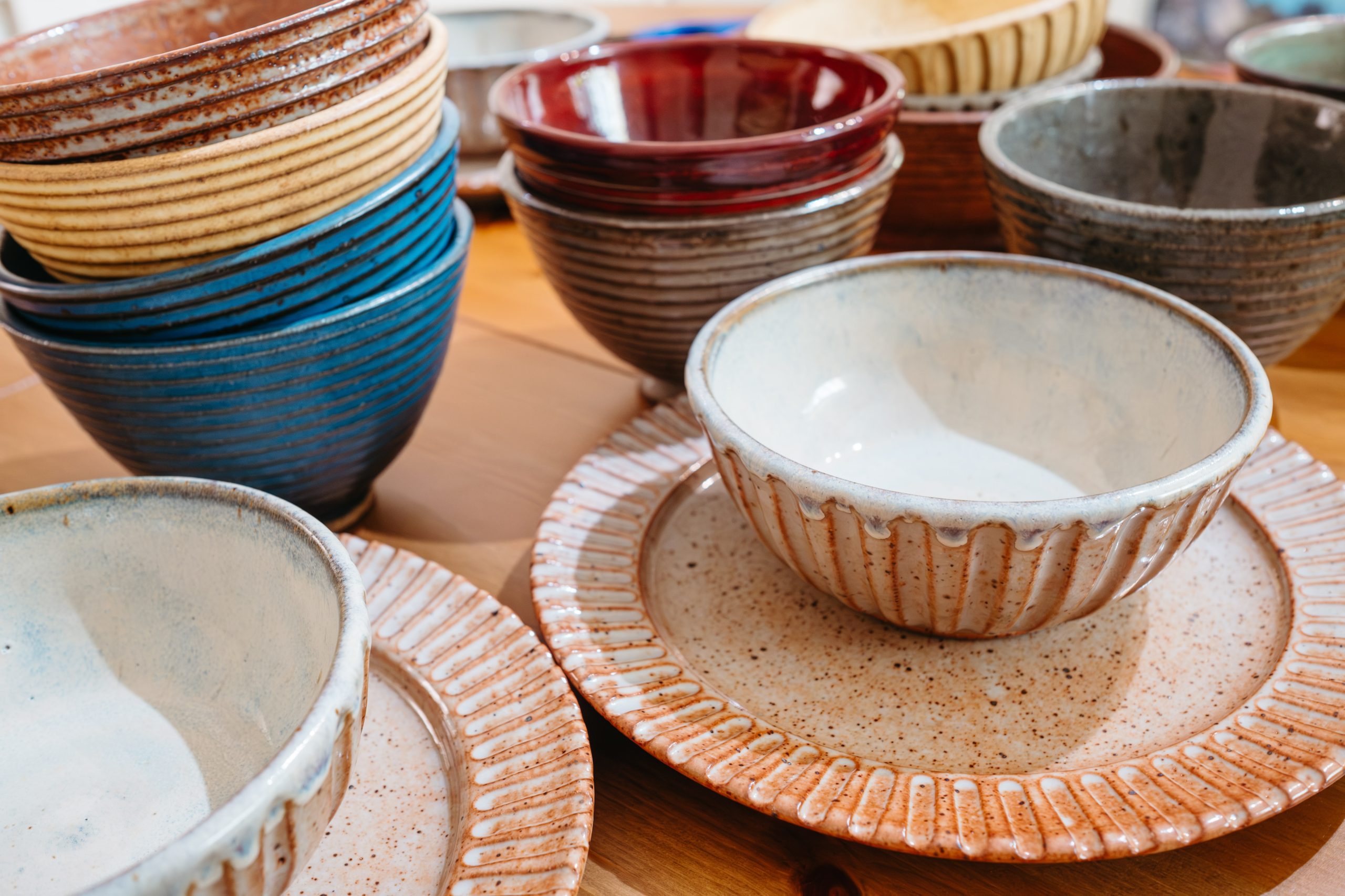 All of my tableware is high fire so the results aren’t as consistent as each firing will be slightly different. The set will be put in the same firing but I can’t guarantee each pots location so there may be slight variation even between pieces ut into the same firing based on the color/glaze selected